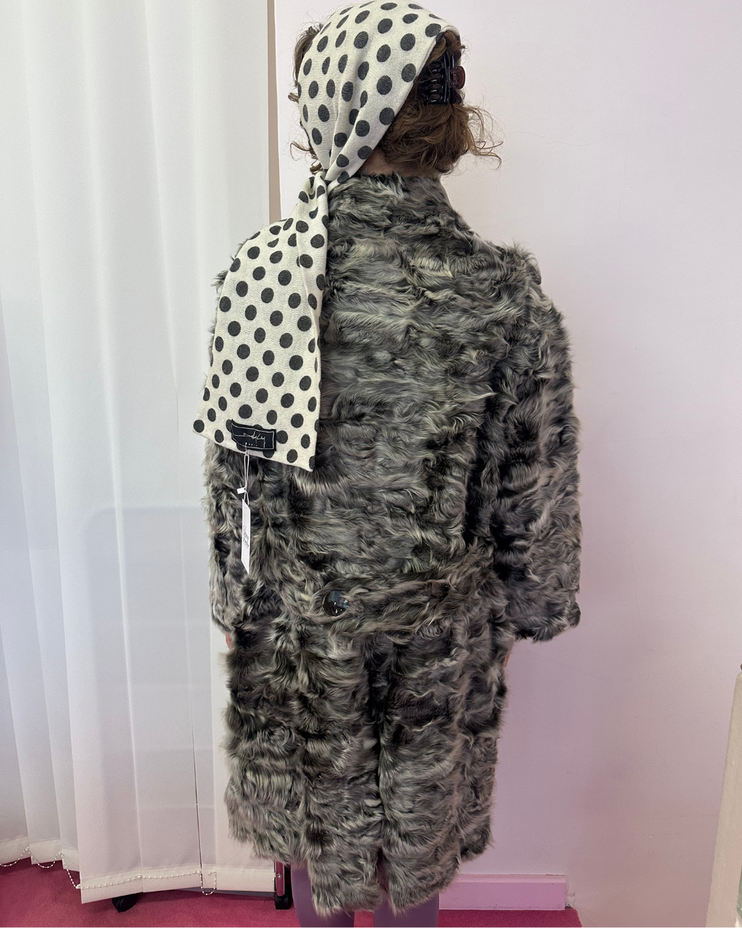Grey fur with iridescent buttons