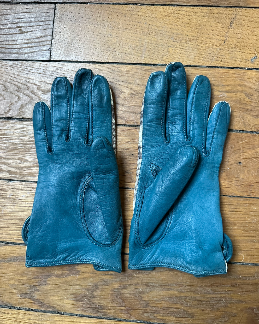 Teal blue leather gloves